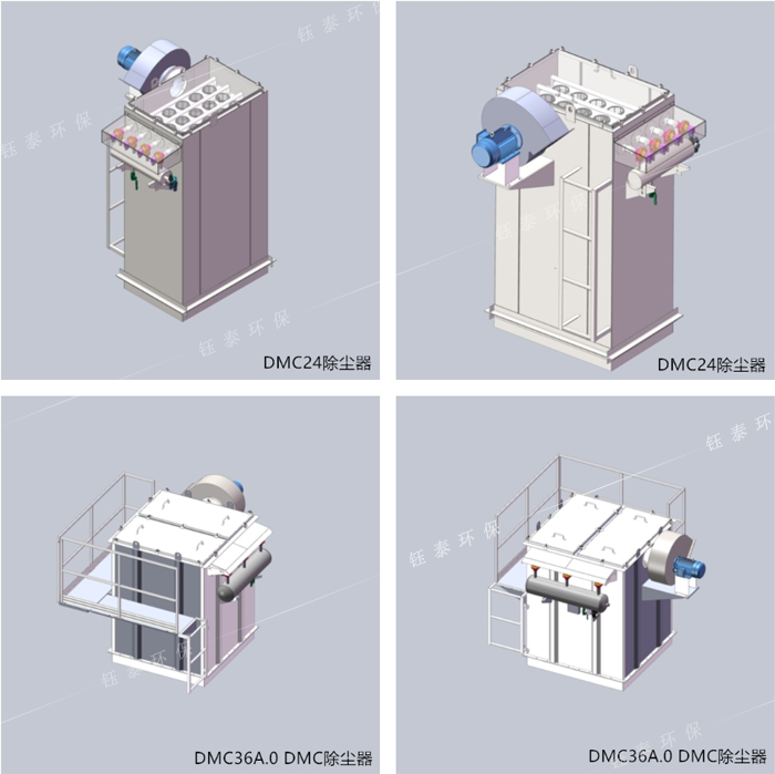 兩大系列十二個規格倉頂除塵器,每種規格又可分為標配灰斗A型和開式法蘭B型(無灰斗,適用于水泥罐頂部)。