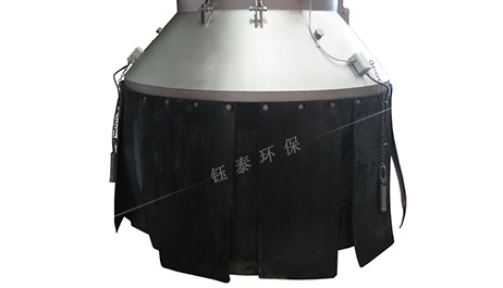 溜筒出口處的吸塵罩為多層結構,內層為由皮帶膠組成的耐磨性能好、有一定相對硬度且具柔性的圍裙。皮帶膠圍裙主要用于緩解高速物料帶來的沖擊,緩沖高速氣流帶來的粉塵急速擴散。吸塵罩的皮帶膠圍裙也起支撐作用,可以避免由于負壓作用,外層帆布裙被吸扁,碰到料位檢測裝置導致誤報信號或者在溜筒出料口干擾物料流動。吸塵罩外層為雙重帆布圍裙,帆布裙的內層長度需比皮帶膠圍裙大,需完全罩住皮帶膠圍裙。帆布裙外層比內層略大,需覆蓋住溜筒出口處的物料。雙重結構主要用于控制粉塵外揚及外部風力作用將粉塵揚起擴散。整個吸塵罩在物料面和溜筒出口間構成一個相對密閉的空間,防止粉塵外溢。