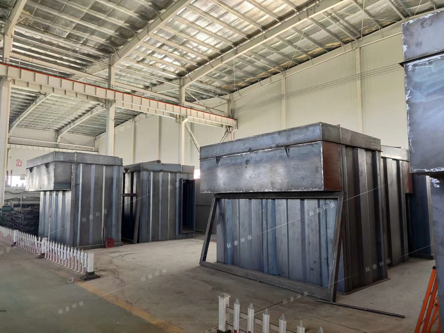 服務(wù)電話:13091153069(同微信) 烘干機除塵器是專門用來處理烘干機尾氣的除塵器,烘干機是靠前面的熱風爐鼓進熱風對物料進行滾動式烘干。由于烘干機前面的熱風爐采用的燃煤方式,產(chǎn)生的廢氣中含有大量水蒸氣,很容易結(jié)露,產(chǎn)生的腐蝕性,所以,烘干機廢氣處理一直是困擾生產(chǎn)的一個嚴重問題。在處理這類氣體時要注意以上幾點廢氣特性。針對這種工況條件,我公司對除塵器進行了處理,將普通鋼板制成的花板換為不銹鋼材質(zhì)的,處理的濾袋選用氟美斯,骨架采用有機硅處理(或不銹鋼材質(zhì)制成)。除塵器內(nèi)部用環(huán)氧聚脂涂料經(jīng)過三層處理。外層用10公分厚的輕質(zhì)巖棉和彩鋼板做保溫處理。經(jīng)過以上改進,除塵器即可滿足烘干機的工況條件。