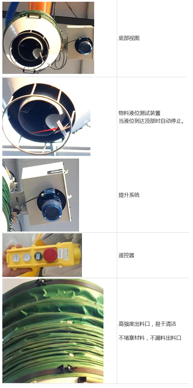 外層風筒采用高強聚酯布,防變形骨架,耐用可靠。保證排氣暢通,確保罐車內負壓度,在保證裝車快速的同時確保不跑灰,無揚塵。
