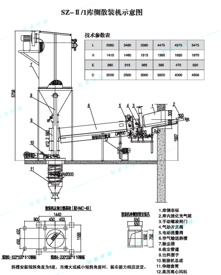 散裝機自帶除塵器,過濾面積為64m2,排塵濃度≤30mg/Nm³(滿足國家環(huán)保有關(guān)標準要求)。