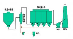 中頻電爐通常工作狀態下,每套電爐2個爐體為熔化/保溫交替作業,所需處理煙氣量一般可分別按100%和30%考慮,混合煙氣溫度可按<130℃設計。電爐除塵系統采用旋風+布袋過濾兩級干法除塵工藝,即每臺電爐煙氣經一定長度的管道順序進入一級旋風除塵器去除粗顆粒 -